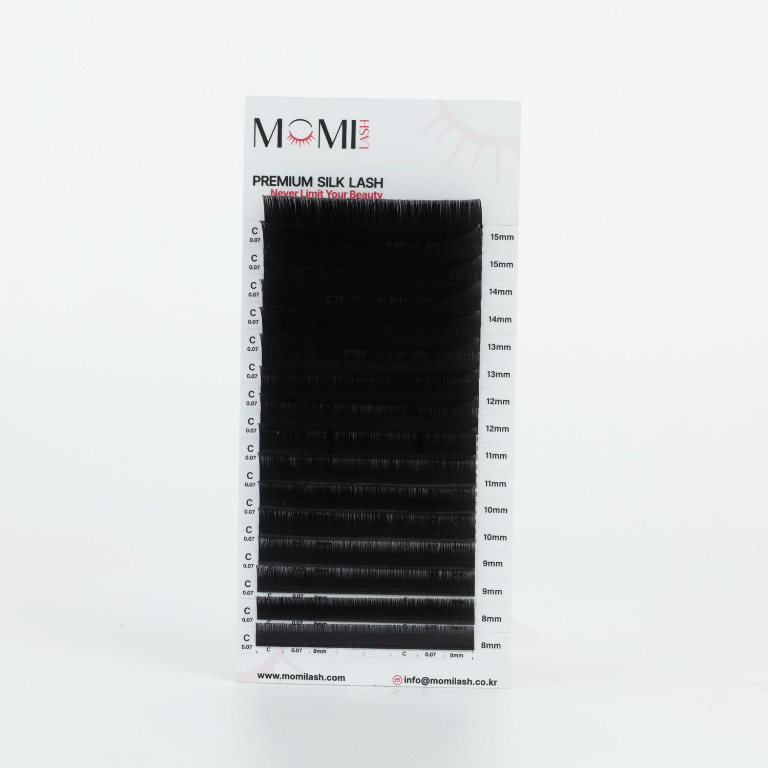 MOMI C-Curl Premium Silk Lash Eyelash Extensions (Mixed Size 8~15mm, 16 Lines)